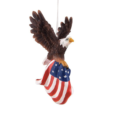 GALLERIE II 4" HAND PAINTED RESIN FLYING EAGLE w/FLAG PATRIOTIC XMAS ORNAMENT