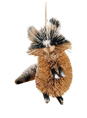 GALLERIE II 4" NATURAL BURI BRISTLE RACCOON WOODLAND ANIMAL CHRISTMAS ORNAMENT