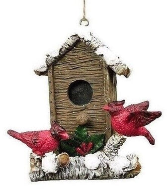 GALLERIE II 3" RESIN WOODLAND CARDINAL BIRDHOUSE w/ CHICK CHRISTMAS ORNAMENT C