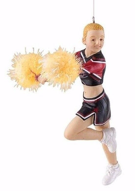 GALLERIE II 4" HAND PAINTED RESIN RED WHITE & BLACK CHEERLEADER XMAS ORNAMENT