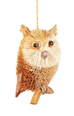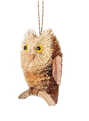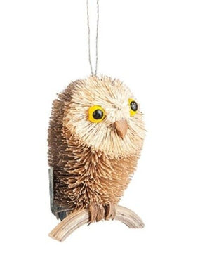 GALLERIE II 4" NATURAL BURI BRISTLE OWL WOODLAND BIRD XMAS ORNAMENT STYLE 1