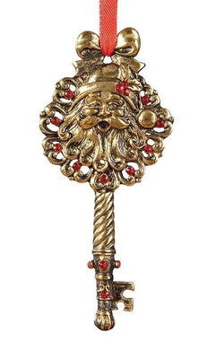 GALLERIE II 4.5" GOLD FINISHED METAL SANTA KEY w/RED GEMSTONES XMAS ORNAMENT