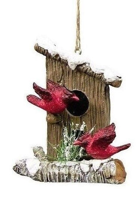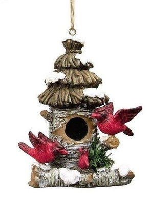 GALLERIE II 3" RESIN WOODLAND CARDINAL BIRDHOUSE w/ TREE CHRISTMAS ORNAMENT B