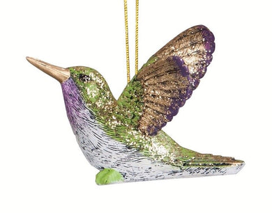 GALLERIE II 3.3" HAND PAINTED GLITTERED POLYRESIN HUMMINGBIRD CHRISTMAS ORNAMENT