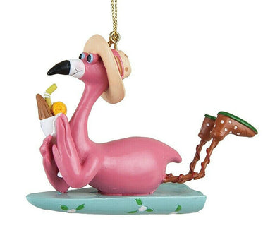 GALLERIE II 3.5" HAND PAINTED POLYRESIN SURFBOARD FLAMINGO CHRISTMAS ORNAMENT
