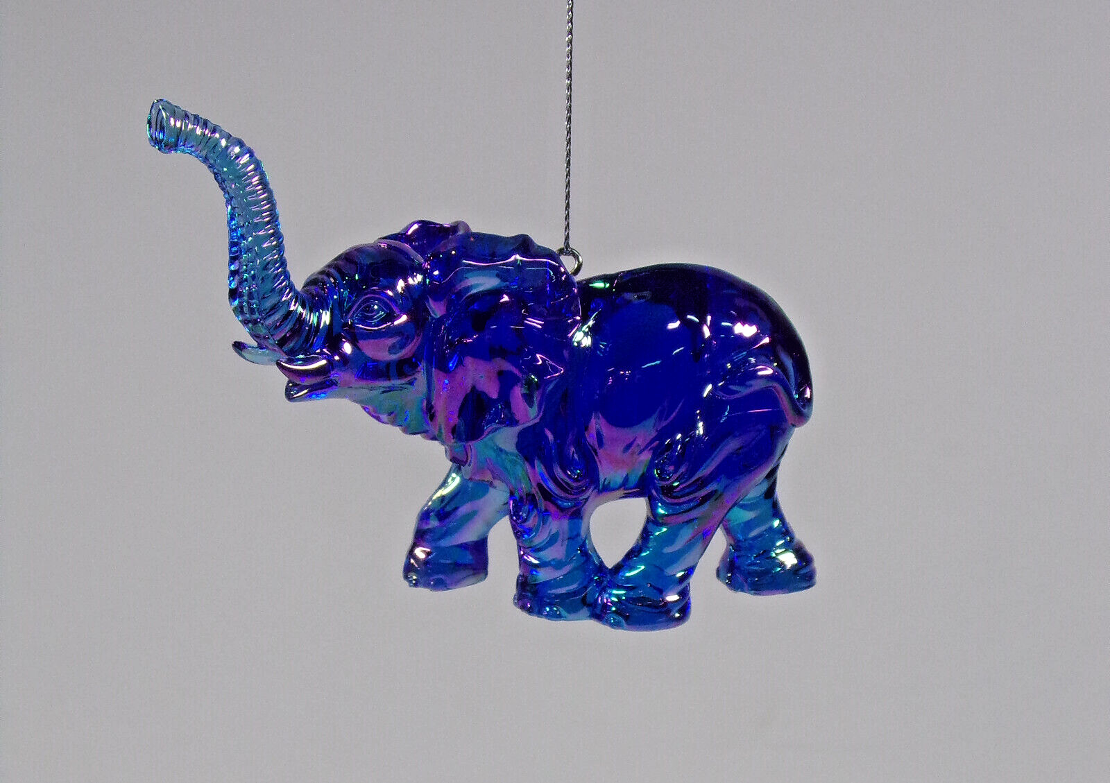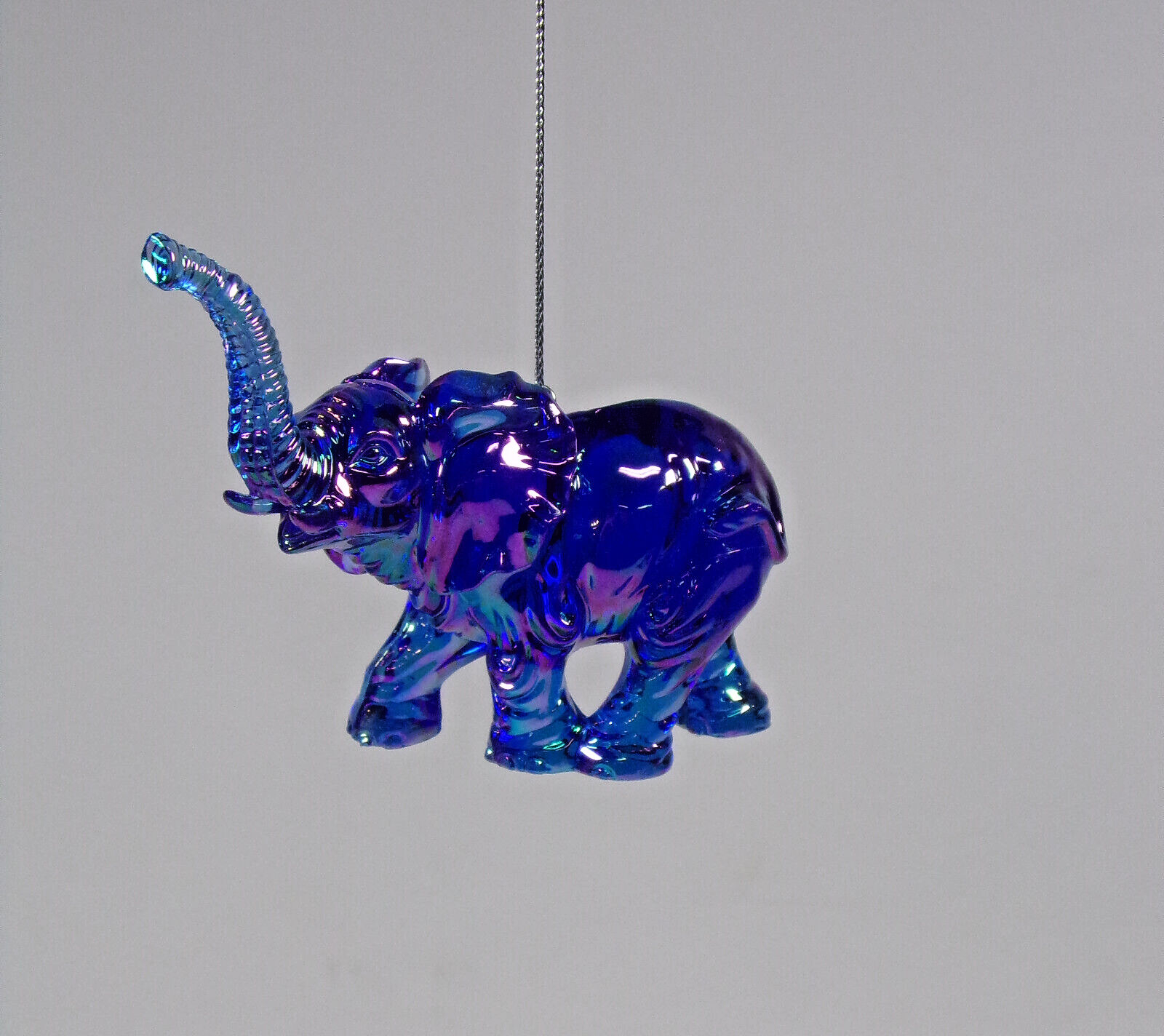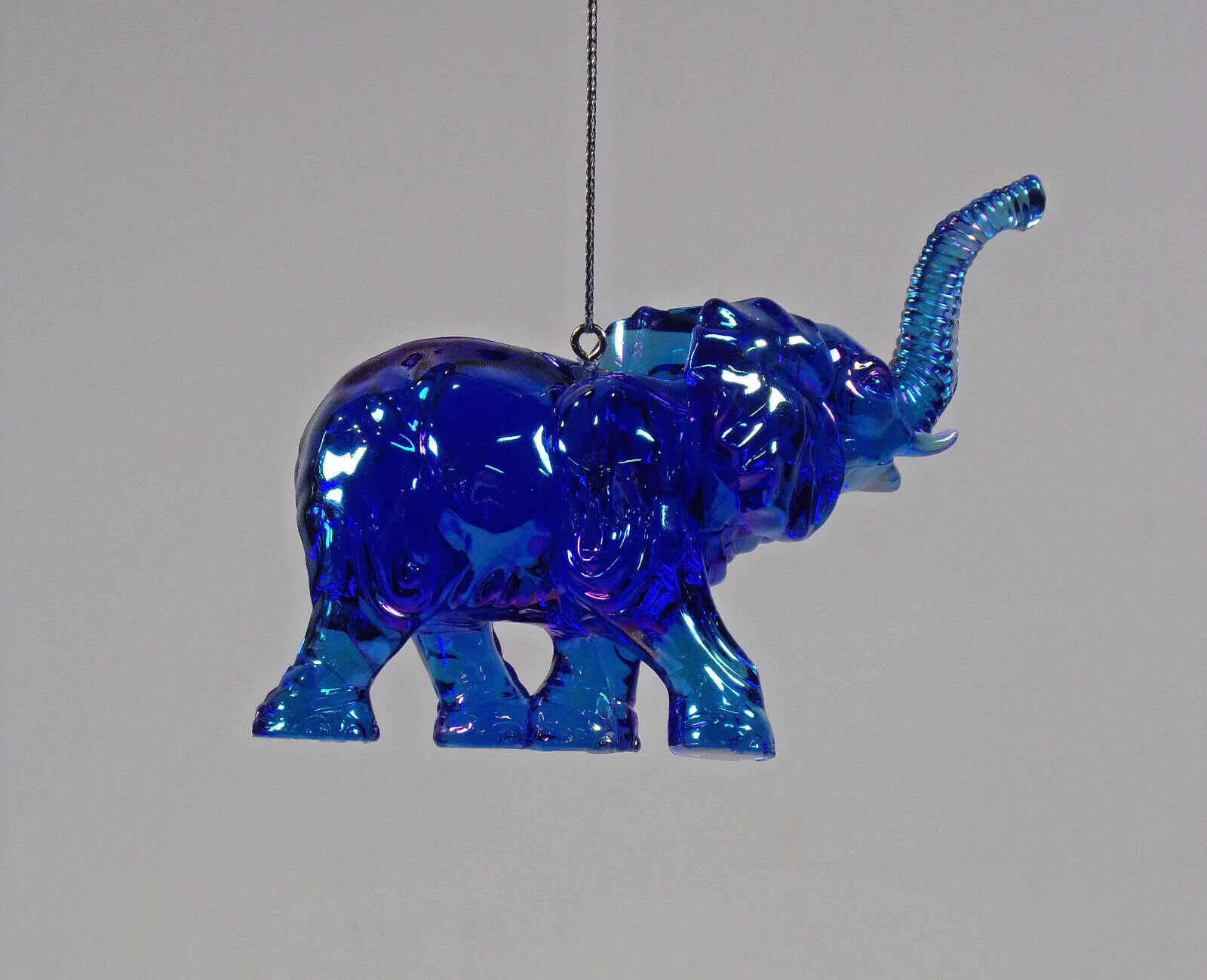 BRAND NEW with Tags ACRYLIC 3.5" IRIDESCENT BLUE ELEPHANT w/TRUNK UP CHRISTMAS ORNAMENT