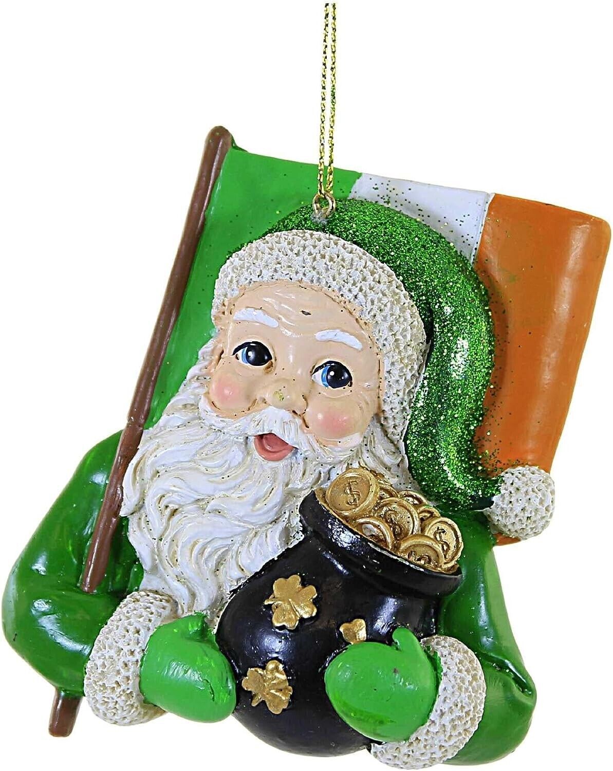 BRAND NEW with Tags KURT ADLER 4" RESIN IRISH SANTA w/FLAG & POT OF GOLD CHRISTMAS ORNAMENT E0675