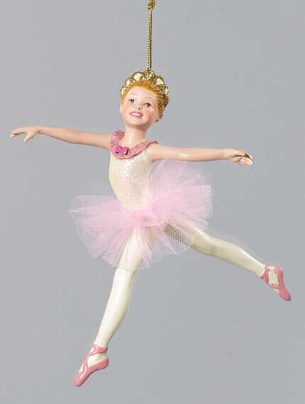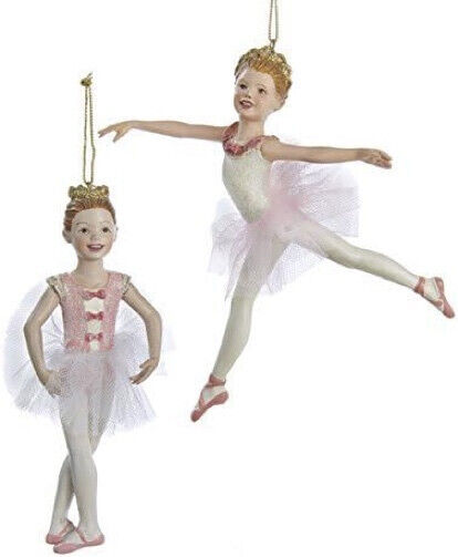 BRAND NEW with Tags KURT ADLER SET OF 2 PINK & WHITE 5.5" RESIN BALLERINA CHRISTMAS ORNAMENTS D0236