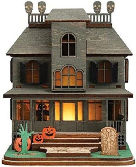 Light this Haunted Mansion at your own risk! With a small hole on its underside designed to borrow a standard bulb from your Christmas tree your mansion will light up. Upon lighting your cottage, you will immediately discover the first of many secrets, the spook-tacularly crafted scene inside. What else can you find lurking around this haunting scene?