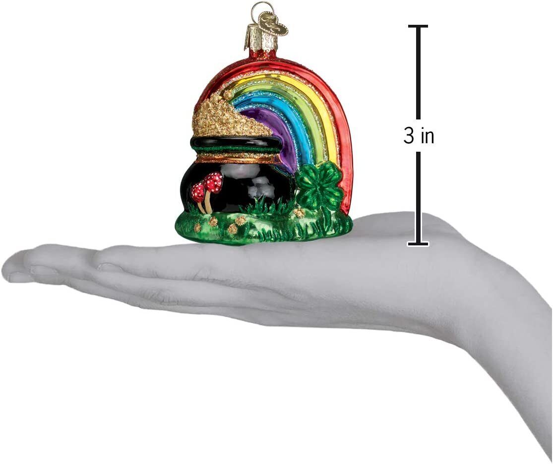 The luck of the Irish is sure to come to the owner of this beautiful ornament, for it carries three lucky symbols. First is the legendary pot of Leprechaun s gold found at the end of the rainbow. Second is the rare four leaf clover. Third is the double mushroom, which doubles the good luck!